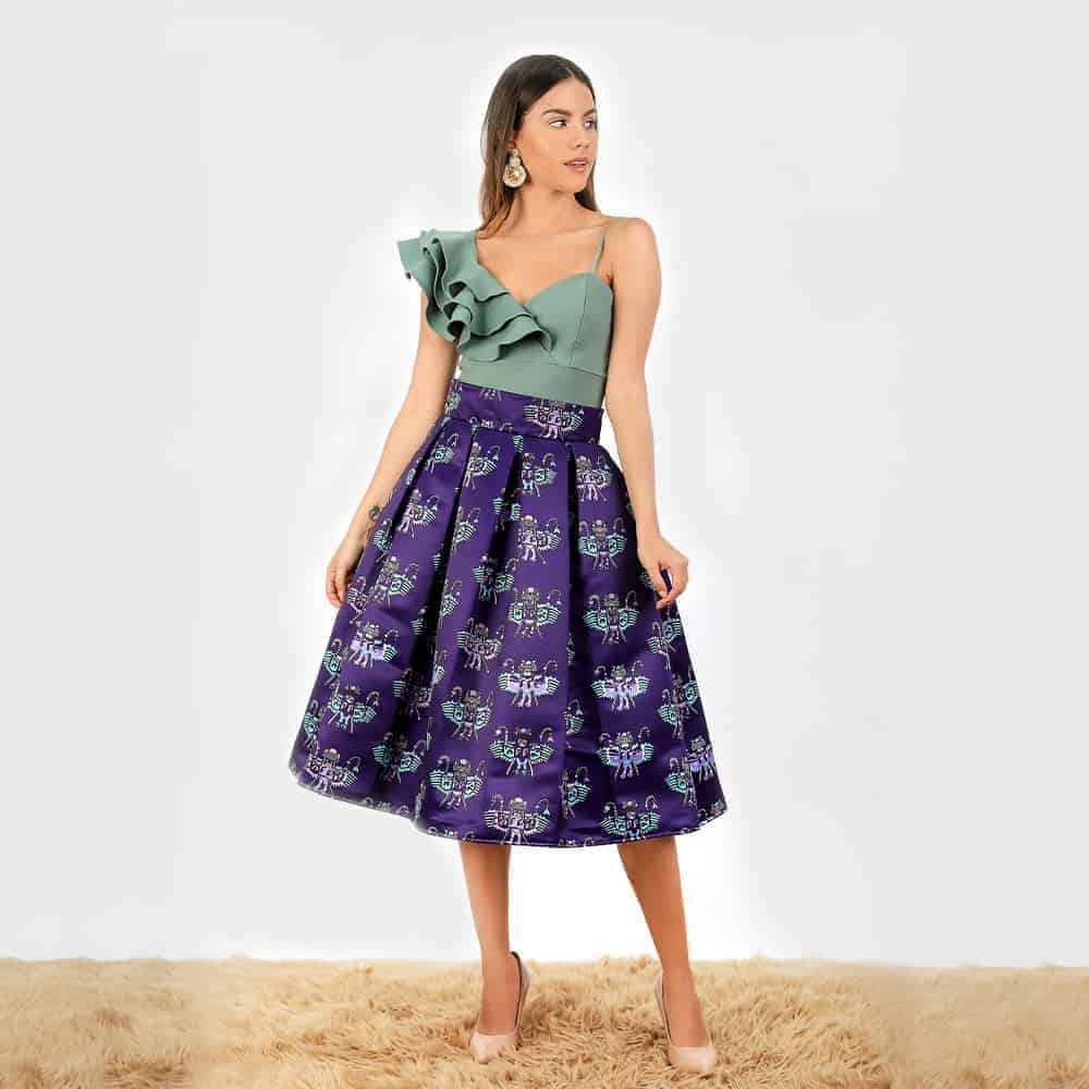 Midi Rock mit Innenfutter und in der Paracaskultur inspiriertem Muster
