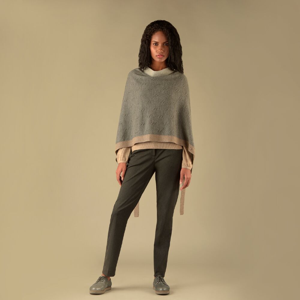 Unser schlanker und vielseitiger Poncho mit Knopfleiste ergänzt eine Vielzahl von Stilen. Tragen Sie es mit einer Hose mit schmalem Bein oder weitem Bein.